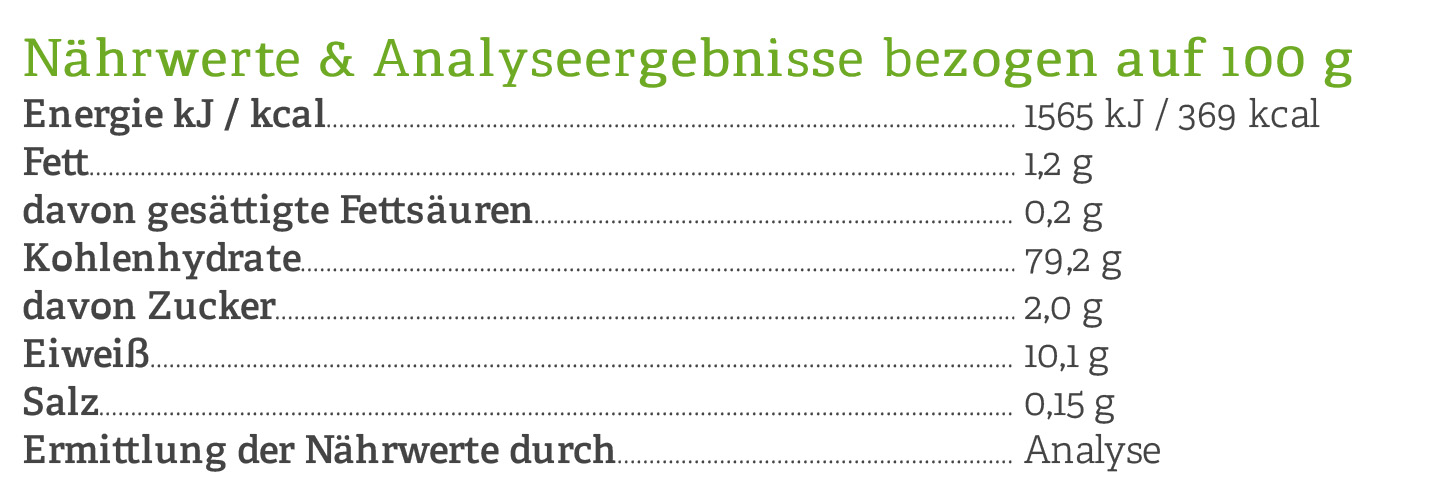 400g Beutel Zutaten: regionales Bioland-Emmervollkornmehl Enthält Gluten Nudeln mit herzhaft vollmundigem Geschmack und einer schnellen Kochzeit von 3-6 Minuten. DE-ÖKO-006